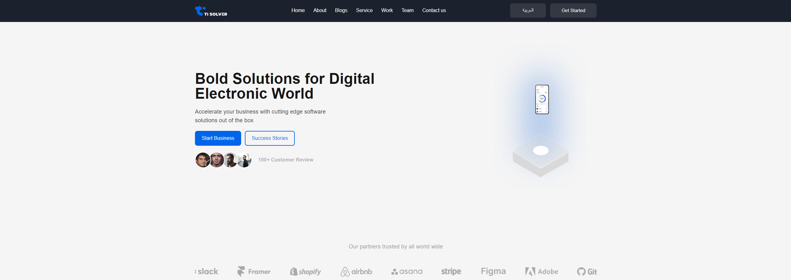 A landing page for a software startup.